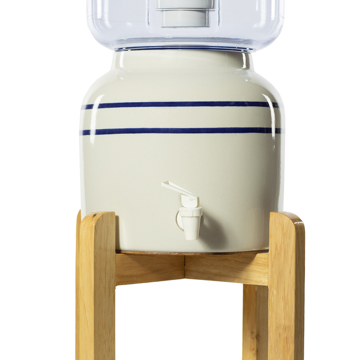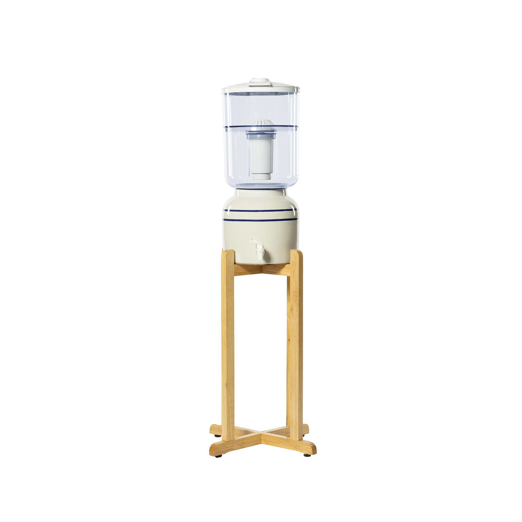 CERAMIC es un dispensador hecho a base de cerámica blanca con detalles en azul marino. Este material permite conservar el agua a la misma temperatura sin necesidad de conectarse a la red eléctrica. Además, cuenta con dos estéticos soportes de madera tanto para disponer de la versión de pie como de sobremesa.